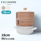 特典付 富士ホーロー せいろ付きホーロー鍋18cm 2段 FUJIHORO せいろ 蒸篭 ほうろう鍋 両手鍋 シート付 セット ホワイト グレージュ