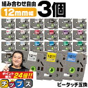 ピータッチテープ ブラザー用 ピータッチ 互換 テープ 12mm 色が自由に選べる3個 ピータッチキューブ対応