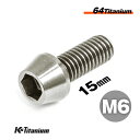 チタンボルト M6×15 P1.0 チタン無垢色 シルバー 単品 1本売り 64チタン テーパーボルト 全ネジ Ti-6Al-4V Gr5 チタ…