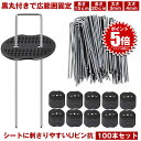 ★P5倍 スーパーセール★Uピン杭 防草シート 人工芝 押さえ用 黒丸板100枚+釘100本セット 特殊釘 雑草対策 押さえ杭 …