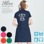 ゴルフウェア レディース 半袖 ワンピ バックプリント鹿の子ワンピース 体型をひろわずに着こなせてすっきり見えるデザイン 定番ポロワンピース型 M/L ゴルフ