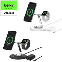 Belkin Qi2 3-in-1 Qi2ワイヤレス充電スタンド Qi2公式認証/MagSafe対応 iPhone 16/15/14/13/12/Qi2対応スマホ(最大15…