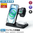 ワイヤレス 充電器 iPhone Airpods Pro Apple Watch Andriod 3in1 QI iPhone 16 15 14 13 12 ワイヤレスチャージャー スマホスタンド 置くだけ急速 充電 3台