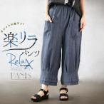 パンツ レディース ブルー デニム クロップド ワイド 体型カバー ウエストゴム 薄手 可愛い カジュアル オシャレに楽チン 楽リラパンツ OTONA 40代 50代 60代