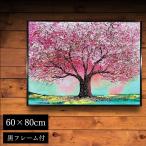 水晶パネル アートパネル 60×80cm 桜 風景 黒フレーム付き クリスタル シルバー 絵 イラスト おしゃれ 高級感 SAKURA-2