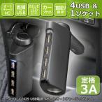 カーメイト CZ429 USB電源 4ポート オートチャージ+ソケット 車載充電器 定格3A USBポート×4 アクセサリーソケット1口 12V車専用 carmate (P07)