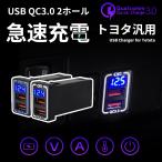 車載QC3.0 カーチャージャー デュアルUSBポート 急速充電 スマホ充電 表示電圧アンペア トヨタ汎用USB充電器 LEDライト(2色選択)